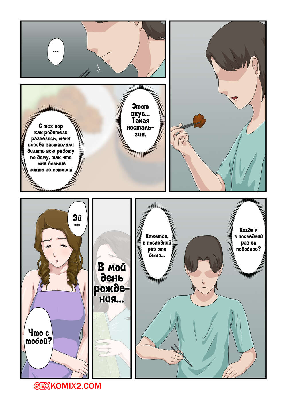 ΠΠΎΡΠ½ΠΎ ΠΊΠΎΠΌΠΈΠΊΡ ΠΡΡΠΎΡΠΈΡ ΠΎ ΡΠΎΠΌ, ΠΊΠ°ΠΊ Ρ ΠΏΡΠ΅Π²ΡΠ°ΡΠΈΠ» ΡΠ²ΠΎΡ Π½Π΅Π½Π°Π²ΠΈΡΡΠ½ΡΡ ΠΌΠ°ΡΡ Π² Π³ΠΎΠ»ΡΡ Π΄ΠΎΠΌΡΠ°Π±ΠΎΡΠ½ΠΈΡΡ ΠΠ°ΡΠ΅Π½Ρ ΠΏΡΠΎΡΡΠΎ Π±Π΅Π· ΡΠΌΠ° ΠΎΡ ΡΠΈΠΊΠ°ΡΠ½ΠΎΠ³ΠΎ ΡΠ΅Π»Π° ΡΠ²ΠΎΠ΅ΠΉ Π³ΠΎΡΡΡΠ΅ΠΉ ΠΌΠ°ΠΌΠΊΠΈ. ΠΠ½ ΠΎΡΡΠ°Π»ΡΡ Ρ Π½Π΅ΠΉ Π½Π°Π΅Π΄ΠΈΠ½Π΅ ΠΈ ΡΠΎΠ±Π»Π°Π·Π½ΠΈΠ» Π΅Π΅, ΠΏΠΎΡΠ»Π΅ ΡΠ΅Π³ΠΎ ΠΊΡΠ°ΡΠΎΡΠΊΠ° ΡΠ°Π·Π΄Π΅Π»Π°ΡΡ ΠΈ ΡΡΠ°Π»Π° ΡΠΎΡΠ°ΡΡ Π±ΠΎΠ»ΡΡΠΎΠΉ Ρ ΡΠΉ ΡΡΠ½Π°, Π° Π·Π°ΡΠ΅ΠΌ Π΄Π°Π»Π° Π΅ΠΌΡ ΡΠ΅Π±Ρ Π²ΡΠ΅Π±Π°ΡΡ.