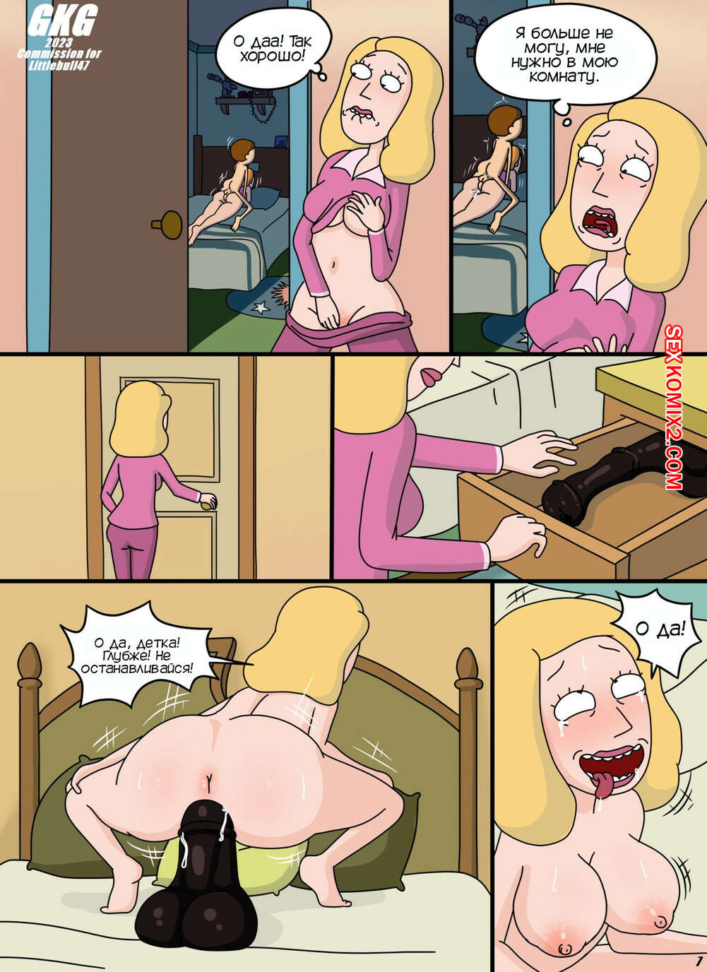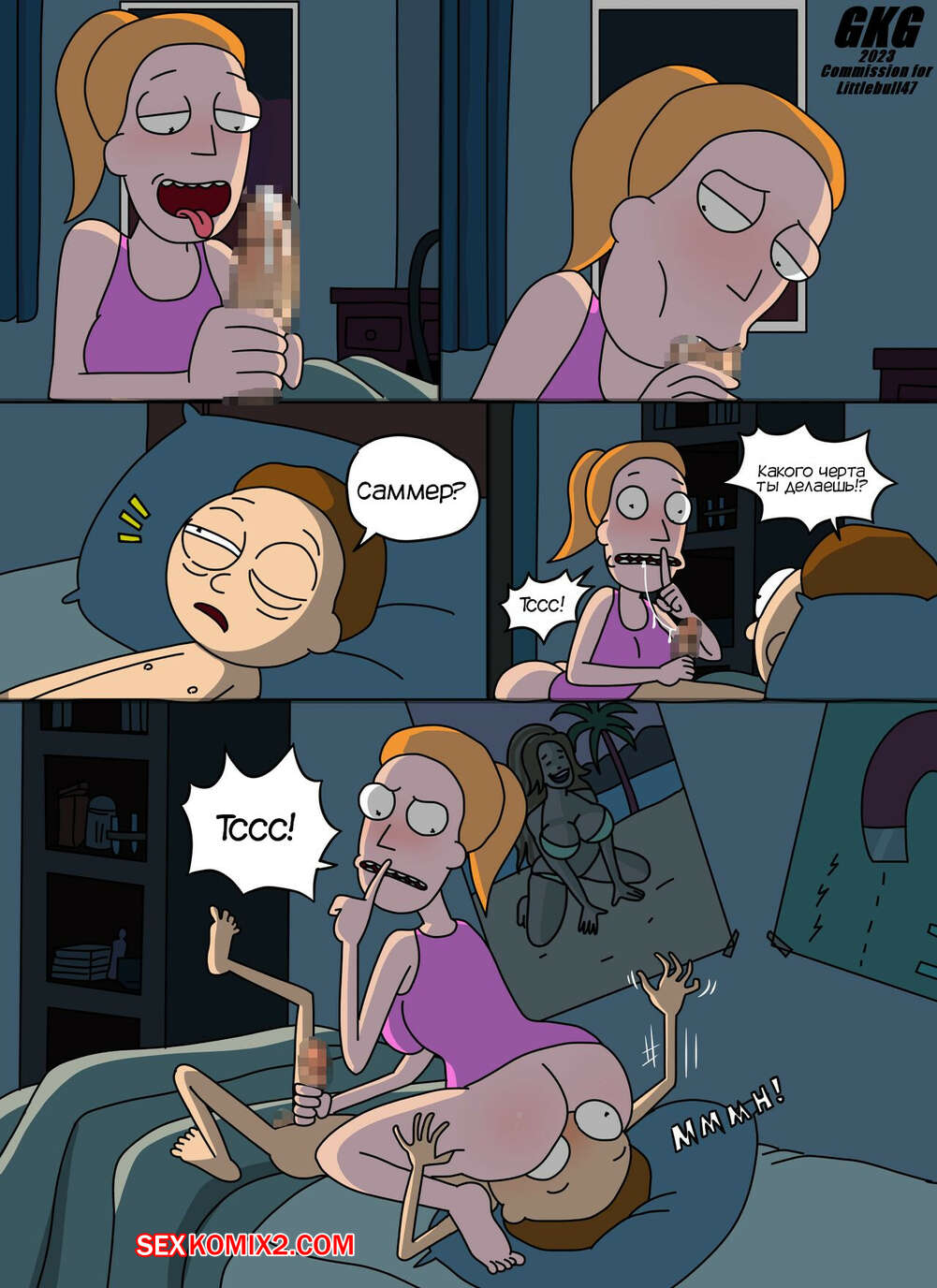 Порно комикс Рик и Морти. Пробраться в комнату Морти ночью. RickMorty. GKG Горячая красотка Саммер пробралась ночью в комнату Морти, чтобы повеселиться с ним. Она стала сосать хуй братика, после чего дала ему себя хорошенько выебать, получив огромное удовольствие.