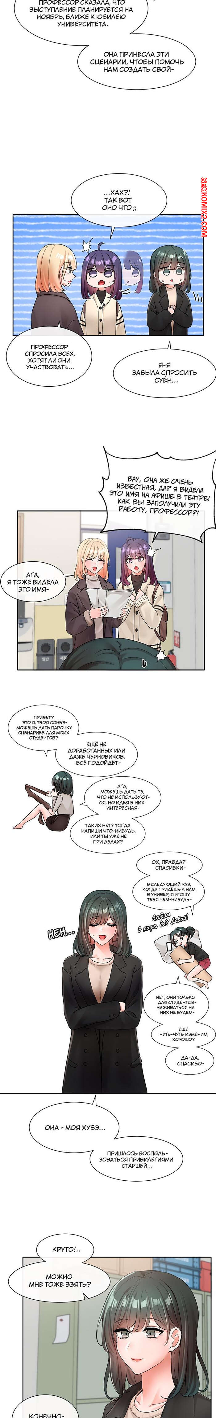 ΠΠΎΡΠ½ΠΎ ΠΊΠΎΠΌΠΈΠΊΡ Π’Π΅Π°ΡΡΠ°Π»ΡΠ½ΡΠΉ ΠΊΠ»ΡΠ±. Π§Π°ΡΡΠΈ 105 ΠΈ 106 ΠΈ 107. Theater cociety ΠΠΎΡΡΡΠ°Ρ ΡΠΈΡΡΡΡΠ°Ρ Π±Π»ΠΎΠ½Π΄ΠΈΠ½ΠΊΠ° Π±ΡΠ»Π° ΠΎΡΠ΅Π½Ρ Π²ΠΎΠ·Π±ΡΠΆΠ΄Π΅Π½Π° ΠΈ Ρ ΠΎΡΠ΅Π»Π° ΡΡΠ°Ρ Π°ΡΡΡΡ. ΠΠ½Π° ΡΠ°Π·Π΄Π΅Π»Π°ΡΡ ΠΏΠ΅ΡΠ΅Π΄ ΡΠ²ΠΎΠΈΠΌ Π΄ΡΡΠΆΠΊΠΎΠΌ ΠΈ ΡΡΠ°Π»Π° ΡΠΎΡΠ°ΡΡ Π΅Π³ΠΎ Π±ΠΎΠ»ΡΡΠΎΠΉ Ρ ΡΠΉ, ΠΏΠΎΡΠ»Π΅ ΡΠ΅Π³ΠΎ Π΄Π°Π»Π° Π΅ΠΌΡ ΡΠ΅Π±Ρ Π²ΡΠ΅Π±Π°ΡΡ.