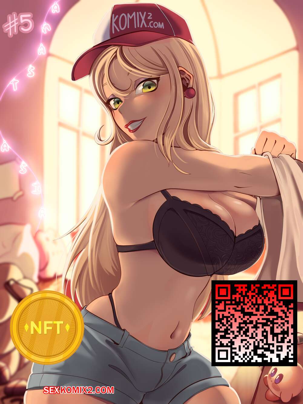 ΠΠΎΡΠ½ΠΎ ΠΊΠΎΠΌΠΈΠΊΡ NFT Anastasia. ΠΠΎΠ΄Π±ΠΎΡΠΊΠ° ΠΈΠ· NFT ΠΊΠΎΠ»Π»Π΅ΠΊΡΠΈΠΈ ΠΠΎΠ΄Π±ΠΎΡΠΊΠ° NFT ΠΊΠ°ΡΡΠΈΠ½ΠΎΠΊ Ρ Π³ΠΎΡΡΡΠ΅ΠΉ Π±Π»ΠΎΠ½Π΄ΠΈΠ½ΠΊΠΎΠΉ ΠΠ½Π°ΡΡΠ°ΡΠΈΠ΅ΠΉ. ΠΠ΅Π²ΡΡΠΊΠ° ΡΠ°Π·Π΄Π΅Π²Π°Π΅ΡΡΡ ΠΈ Π΄Π΅ΠΌΠΎΠ½ΡΡΡΠΈΡΡΠ΅Ρ ΡΠ²ΠΎΠ΅ ΡΠΈΠΊΠ°ΡΠ½ΠΎΠ΅ ΡΠ΅Π»ΠΎ, Π΄ΠΎΡΡΠ°Π²Π»ΡΡ Π·ΡΠΈΡΠ΅Π»ΡΠΌ ΠΎΠ³ΡΠΎΠΌΠ½ΠΎΠ΅ ΡΠ΄ΠΎΠ²ΠΎΠ»ΡΡΡΠ²ΠΈΠ΅.