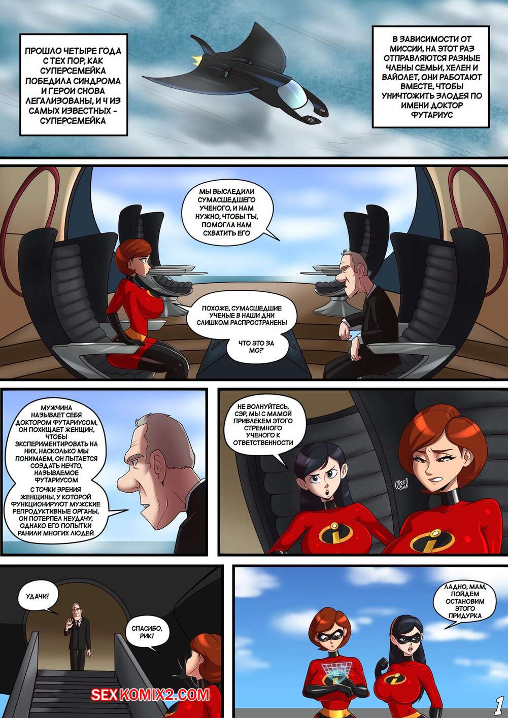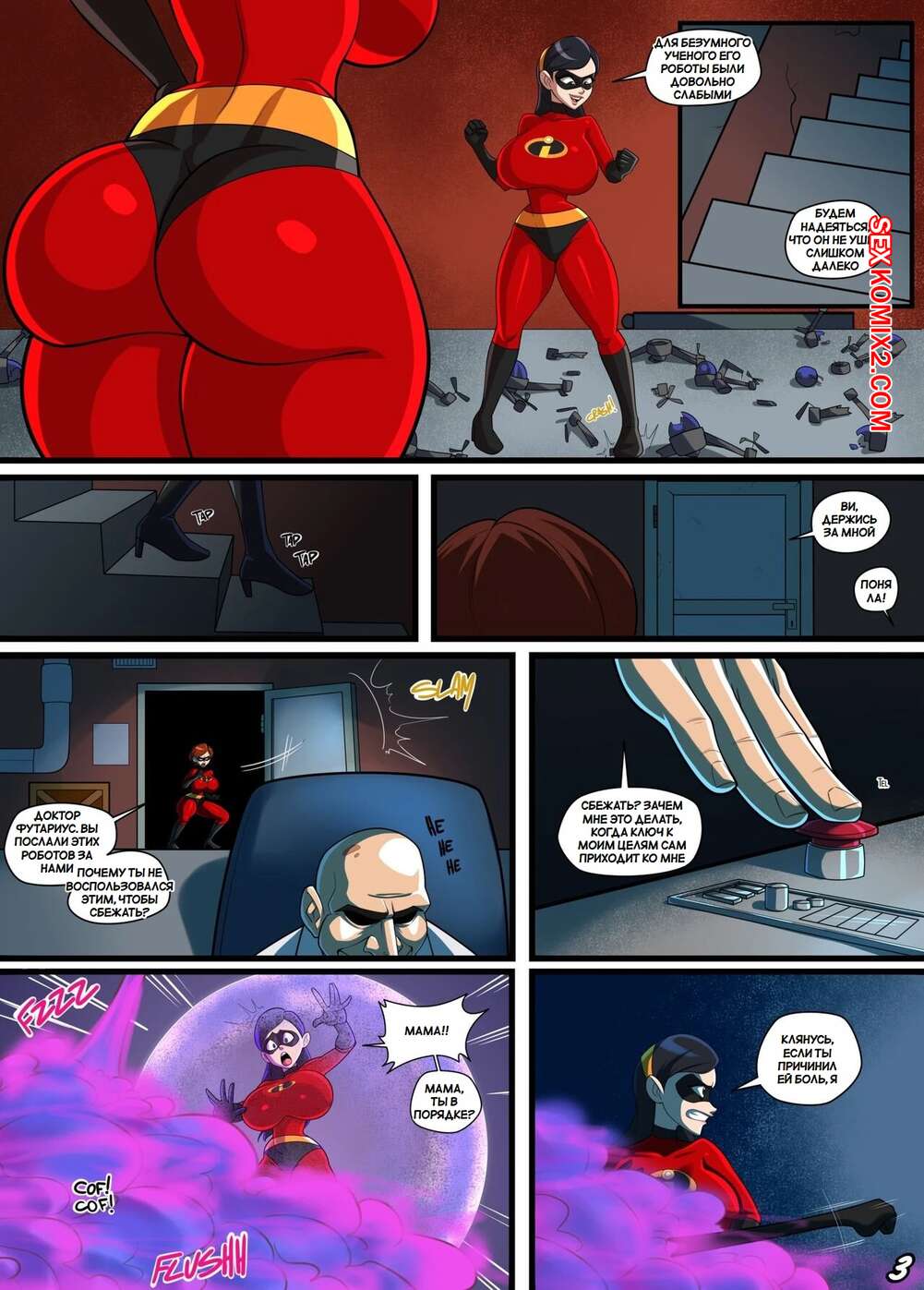 Порно комикс Суперсемейка. Сложная ситуация Хелен. Helens Stretchy Situation. Parvad. Горячая красотка Эластика была очень возбуждена и решила повеселиться со своей дочери. Она раздела Фиалку и дала ей отсосать свой большой хуй, после чего выебала ее пизденку.