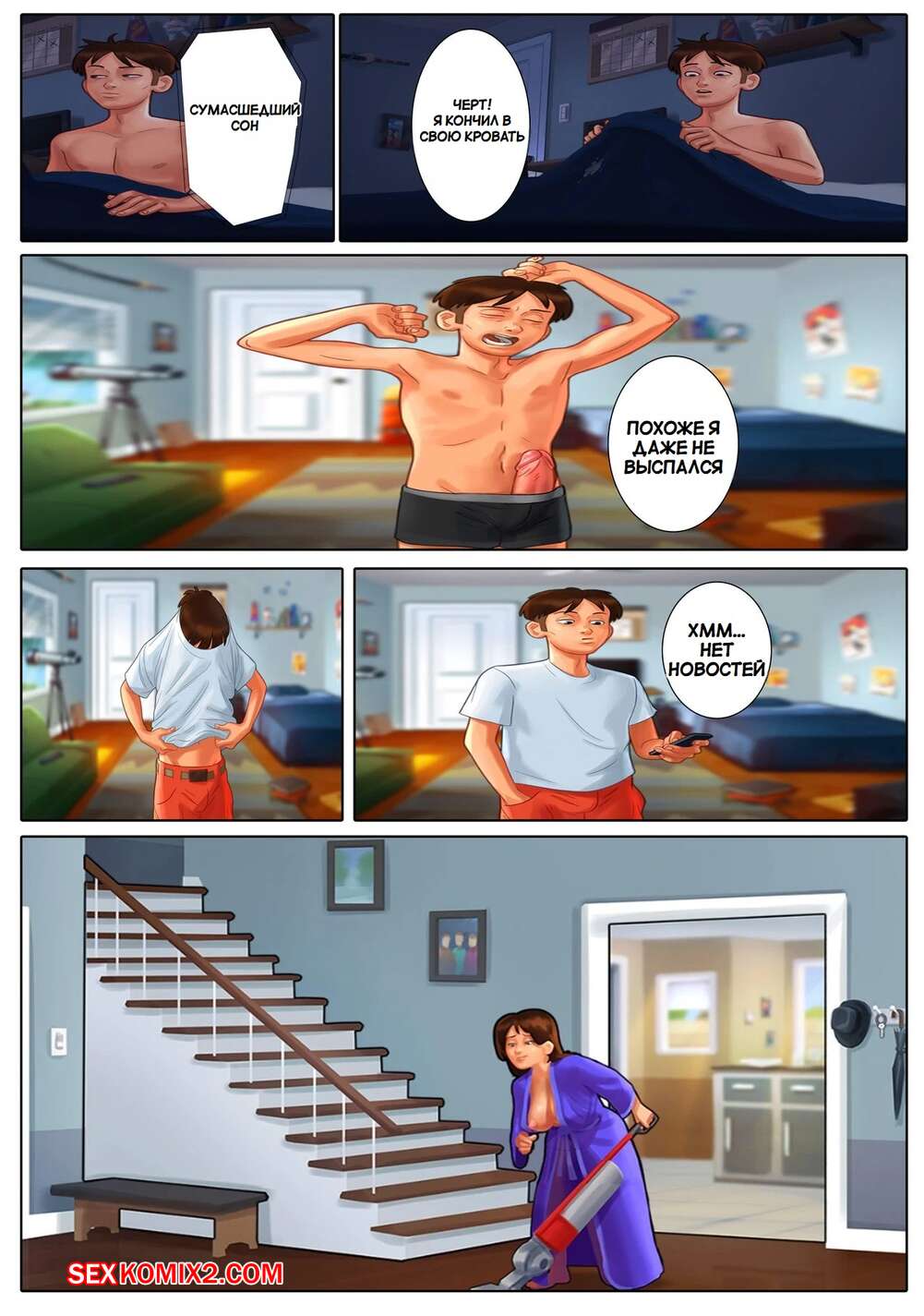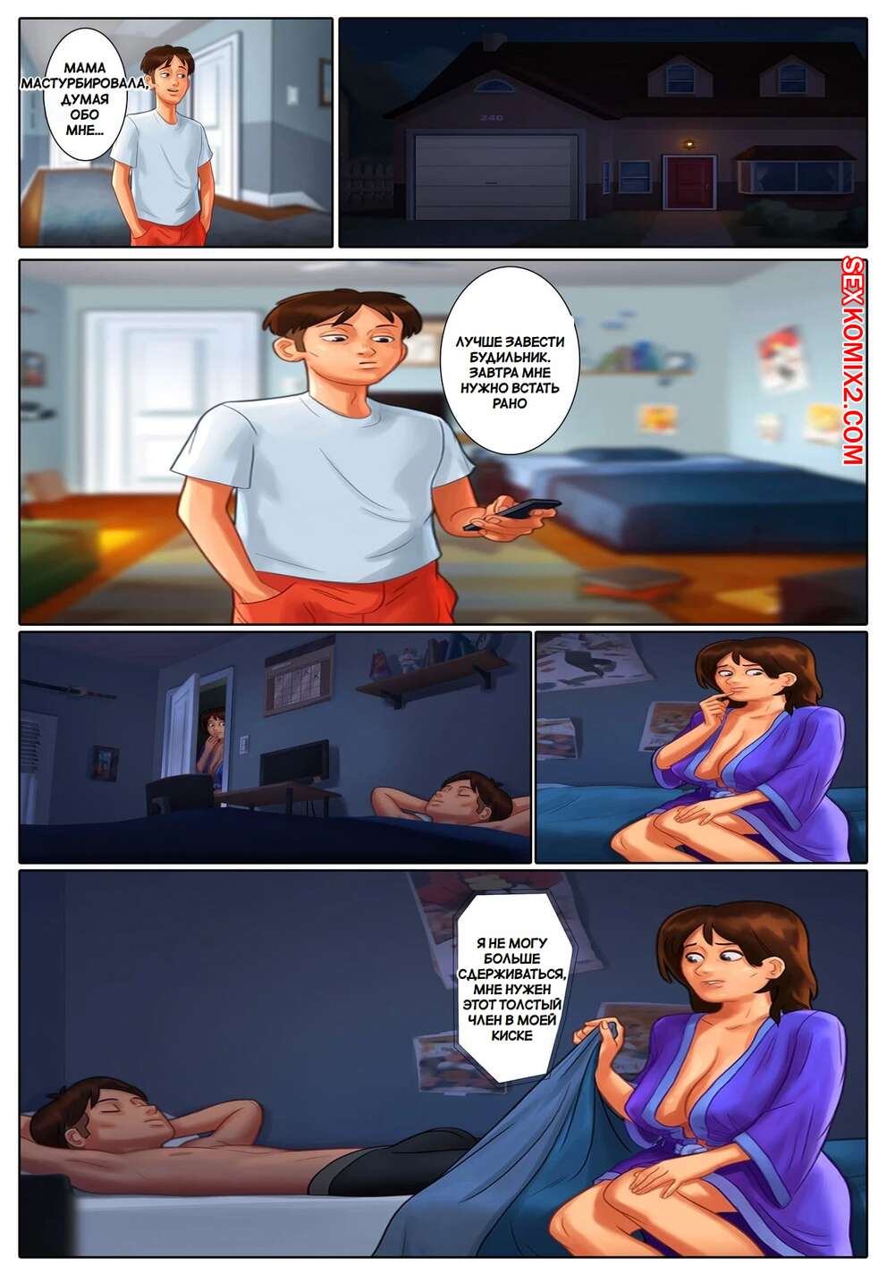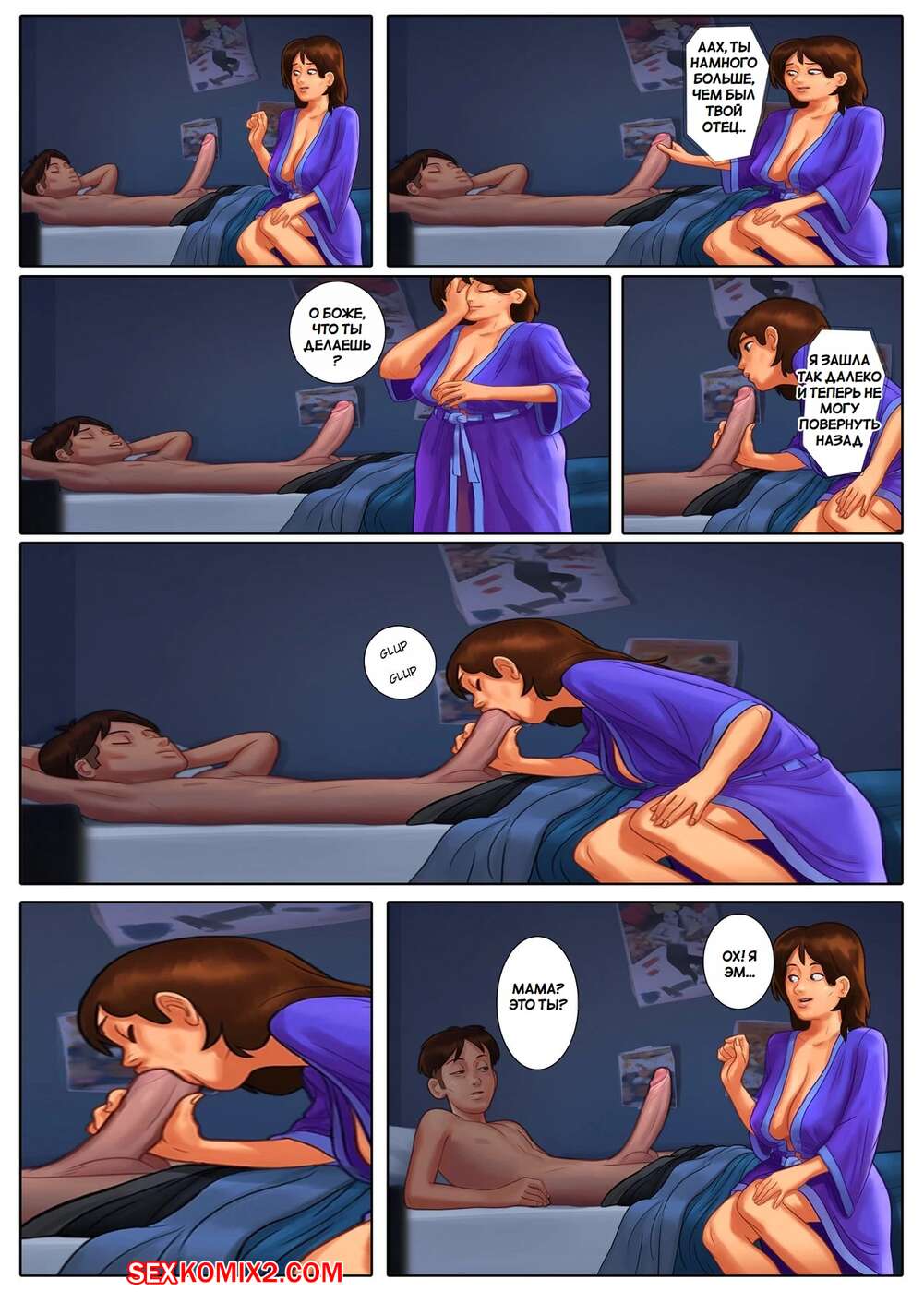 Порно комикс Летняя сага. Summertime Saga. DarkCookie. Мамочка милфа давно не занималась сексом, поэтому она решила повеселиться со своим сыном. Красотка отправилась в комнату к парню и стала ему отсасывать, после чего дала парню выебать себя.