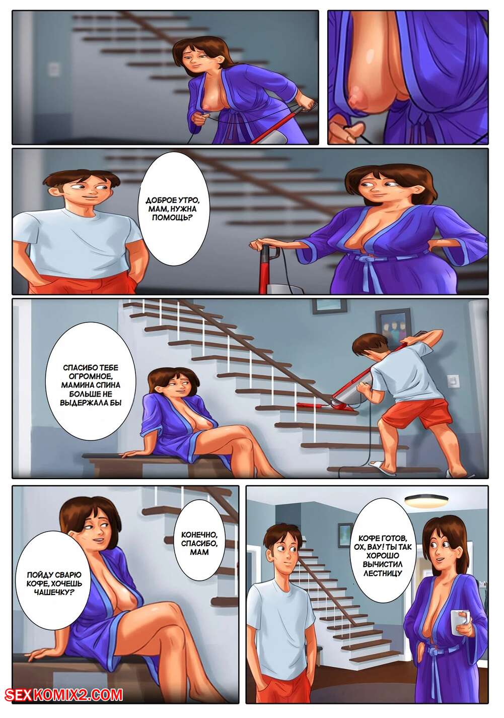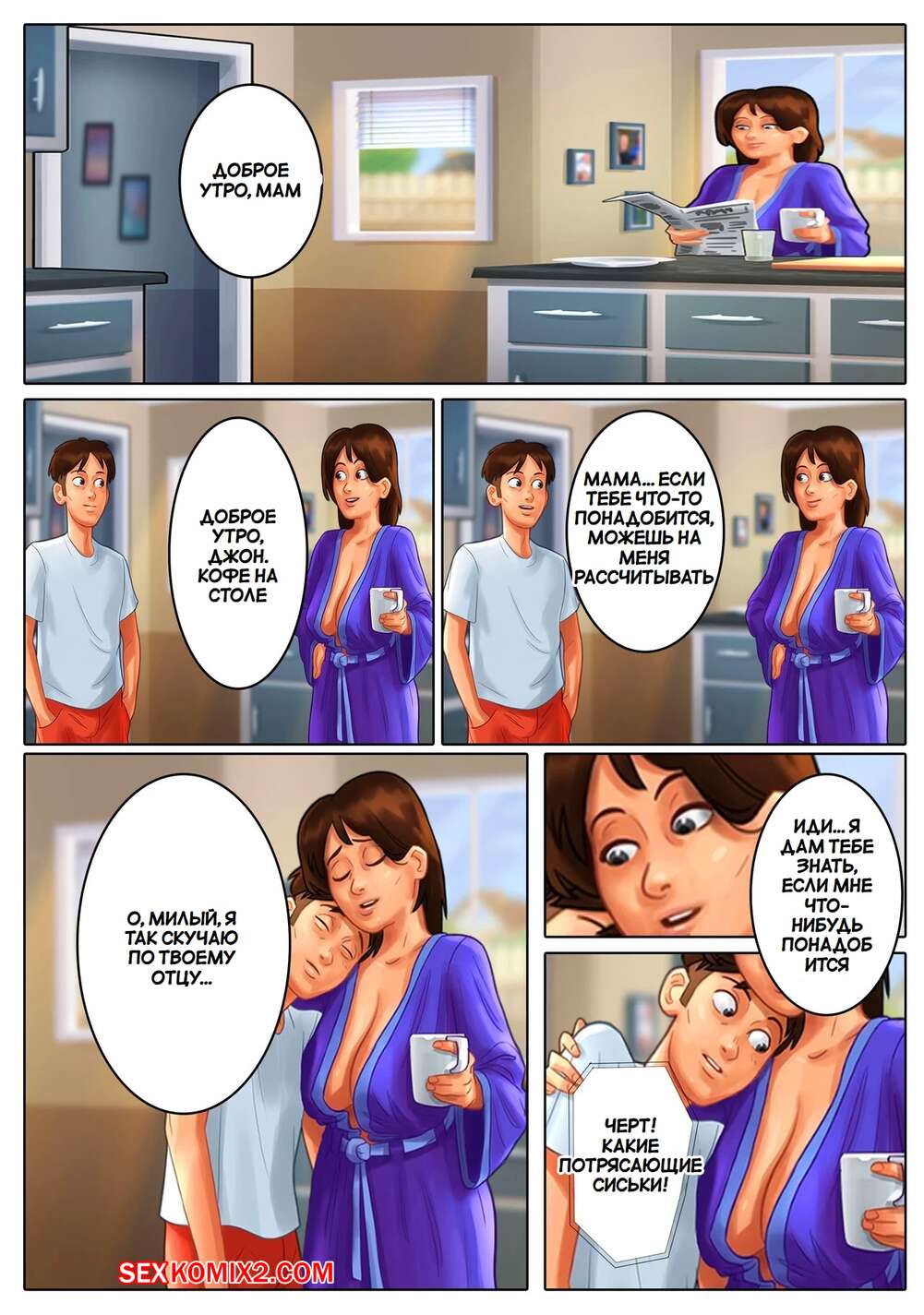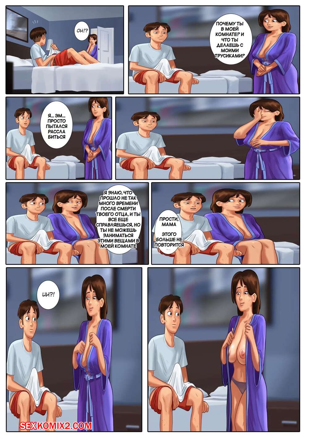 Порно комикс Летняя сага. Summertime Saga. DarkCookie. Мамочка милфа давно не занималась сексом, поэтому она решила повеселиться со своим сыном. Красотка отправилась в комнату к парню и стала ему отсасывать, после чего дала парню выебать себя.