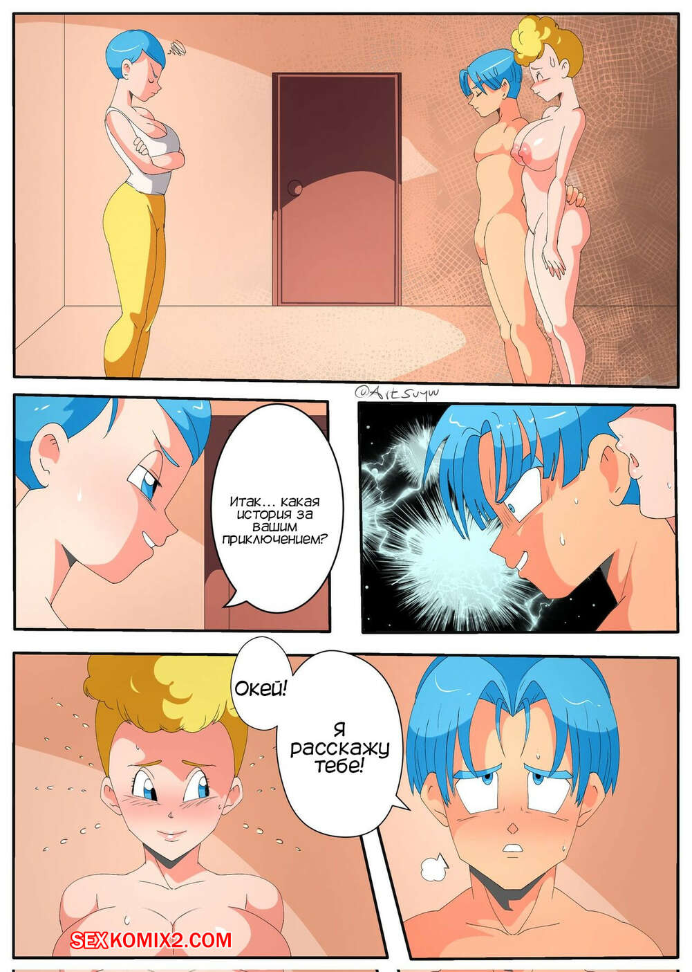 ΠΠΎΡΠ½ΠΎ ΠΊΠΎΠΌΠΈΠΊΡ Dragon Ball. Π’ΡΠ°Π½ΠΊΡ ΠΈ ΠΡΠ½ΡΠΈ ΠΏΠΎΠΉΠΌΠ°Π½Ρ. Trunks and Panchy are caught. Suyuu Art. ΠΠΎΡΡΡΠ°Ρ Π±Π»ΠΎΠ½Π΄ΠΈΠ½ΠΊΠ° ΠΌΠΈΠ»ΡΠ° Π±ΡΠ»Π° ΠΎΡΠ΅Π½Ρ Π²ΠΎΠ·Π±ΡΠΆΠ΄Π΅Π½Π° ΠΈ ΡΠ΅ΡΠΈΠ»Π° ΠΏΠΎΠ²Π΅ΡΠ΅Π»ΠΈΡΡΡΡ Ρ Π’ΡΠ°Π½ΠΊΡΠΎΠΌ. ΠΠ½Π° ΡΠ°Π·Π΄Π΅Π»Π°ΡΡ ΠΈ Π²ΠΎΠ·Π±ΡΠ΄ΠΈΠ»Π° ΠΏΠ°ΡΠ½Ρ ΡΠΈΠΊΠ°ΡΠ½ΡΠΌ ΡΠ΅Π»ΠΎΠΌ, ΠΏΠΎΡΠ»Π΅ ΡΠ΅Π³ΠΎ Π΄Π°Π»Π° Π΅ΠΌΡ ΡΠ΅Π±Ρ Π²ΡΠ΅Π±Π°ΡΡ.