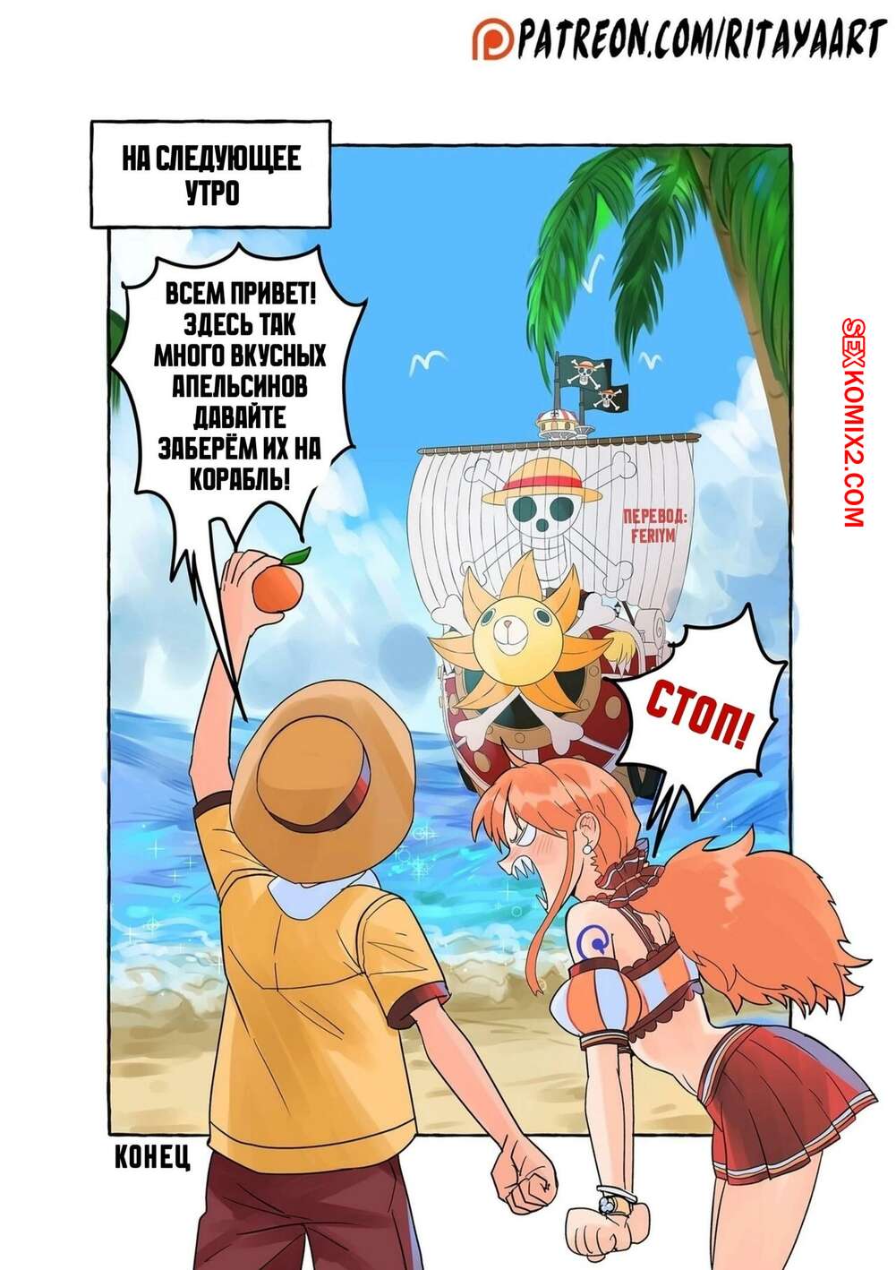 ΠΠΎΡΠ½ΠΎ ΠΊΠΎΠΌΠΈΠΊΡ One Piece. ΠΠ½ΡΠΈΠ΄Π΅Π½Ρ Ρ ΠΊΡΡΡΠ΅Π½ΠΈΡΠΌ ΠΊΠΎΡΠ°Π±Π»Ρ Π½Π° ΠΠ΅ΠΎΠ±ΠΈΡΠ°Π΅ΠΌΠΎΠΌ ΠΎΡΡΡΠΎΠ²Π΅. Rika Ya