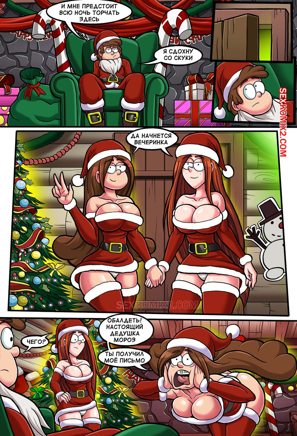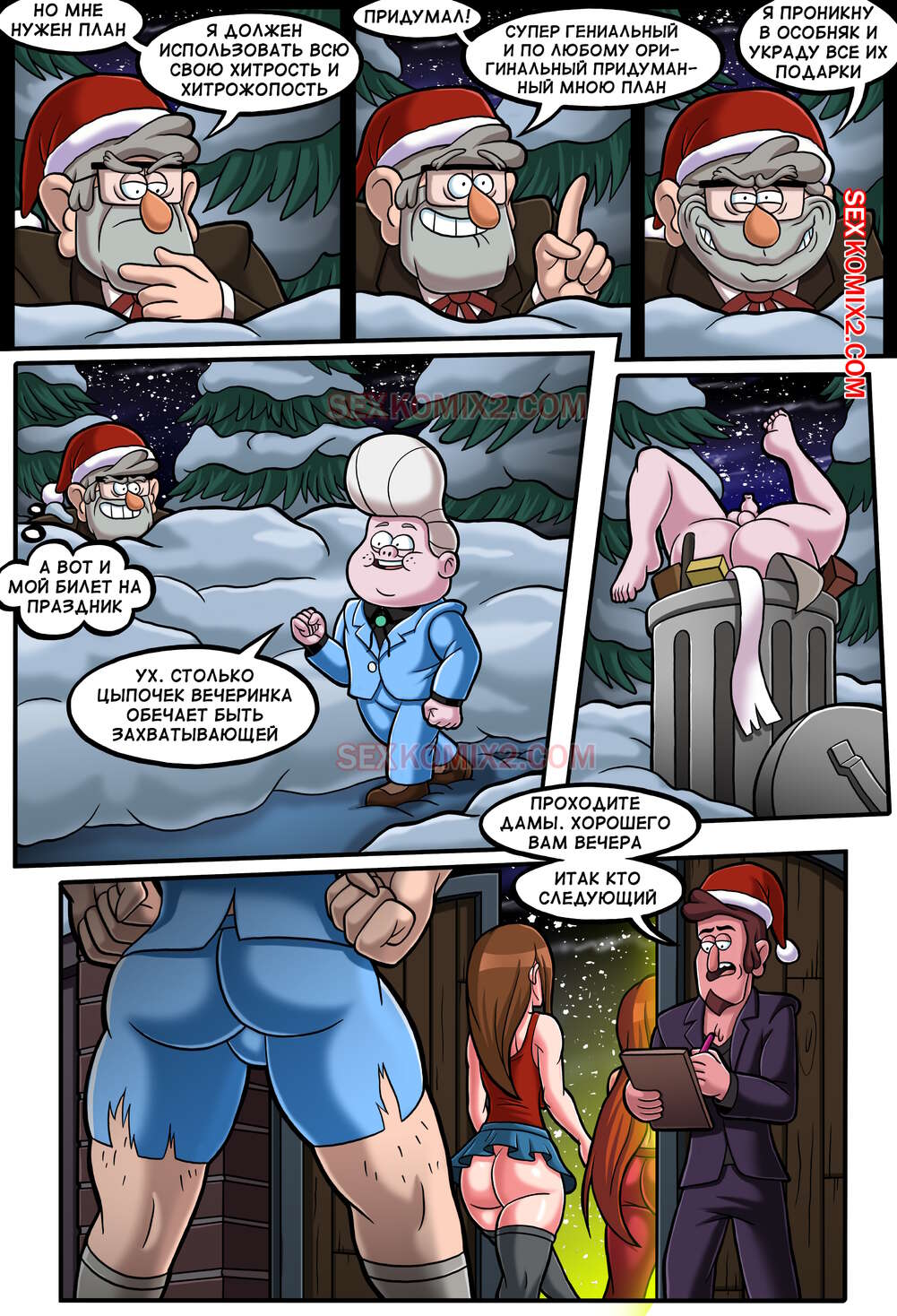 Гравити фолз. Новогодняя вечеринка и большой розовый мишка. by sexkomix2.com. В Мистической лавке полным ходом идет подготовка к Новому году. Стен решил поднять деньжат на посетителях, но все горячие девушки пошли в богатое поместье. Он придумал "гениальный план" как всех красоток переманить к себе.