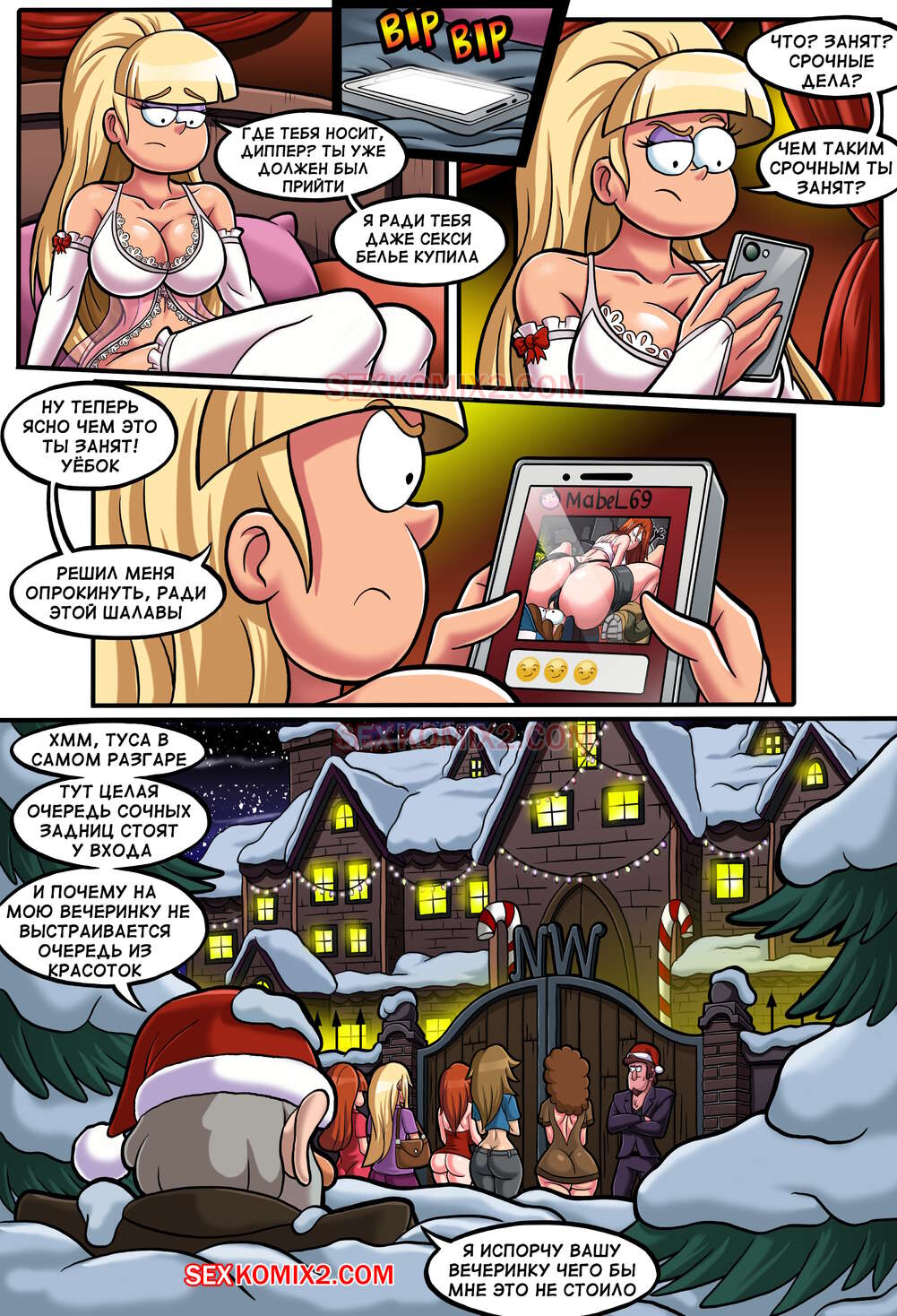 Гравити фолз. Новогодняя вечеринка и большой розовый мишка. by sexkomix2.com.