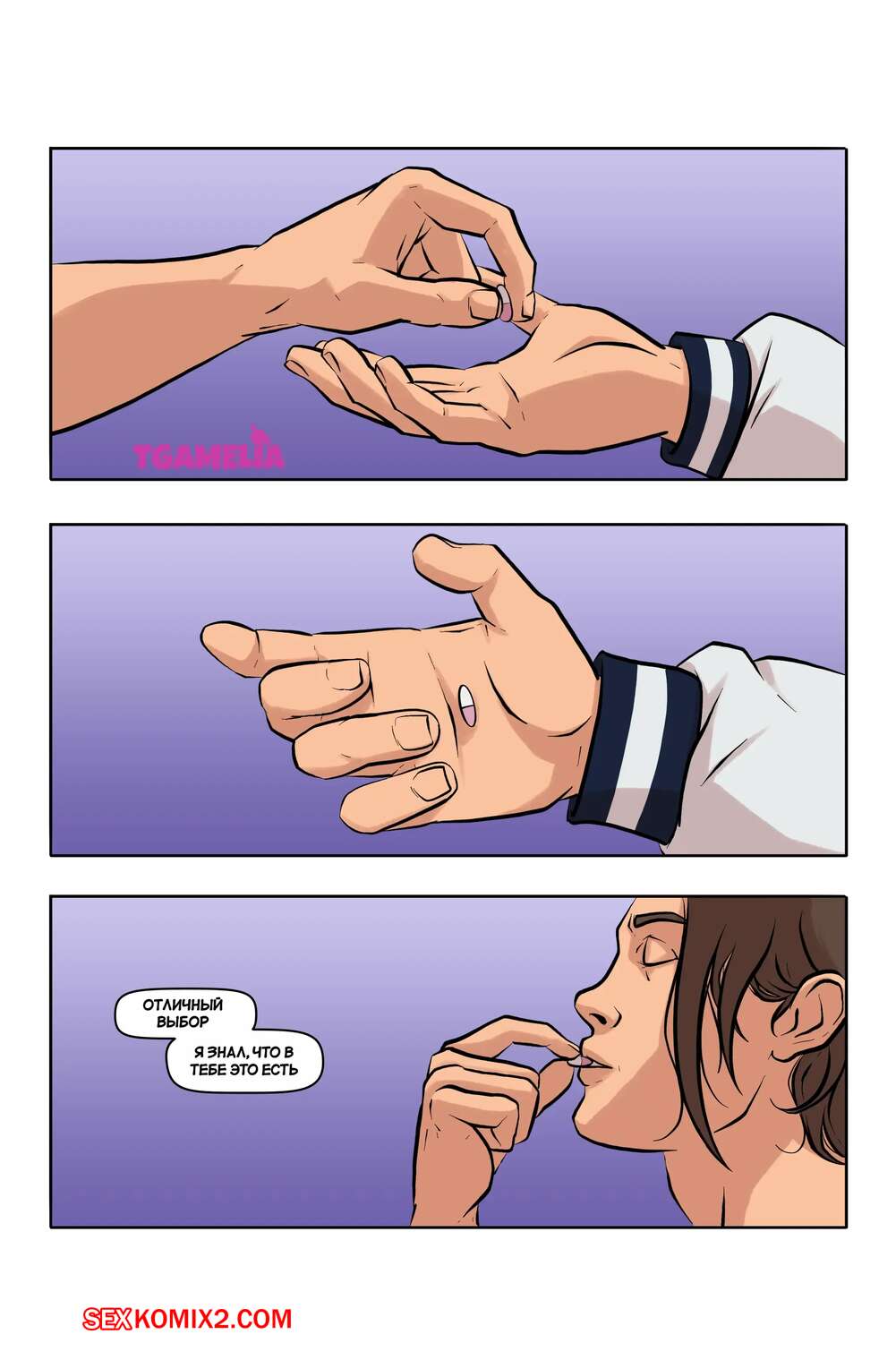 Порно комикс Квотербек. Quarterback Парень перешел в новую футбольную команду, где тренер дал ему выпить особые таблетки. Игрок превратился в сексуальную брюнетку, которая отсосала хуи своих товарищей по команде и дала себя выебать.