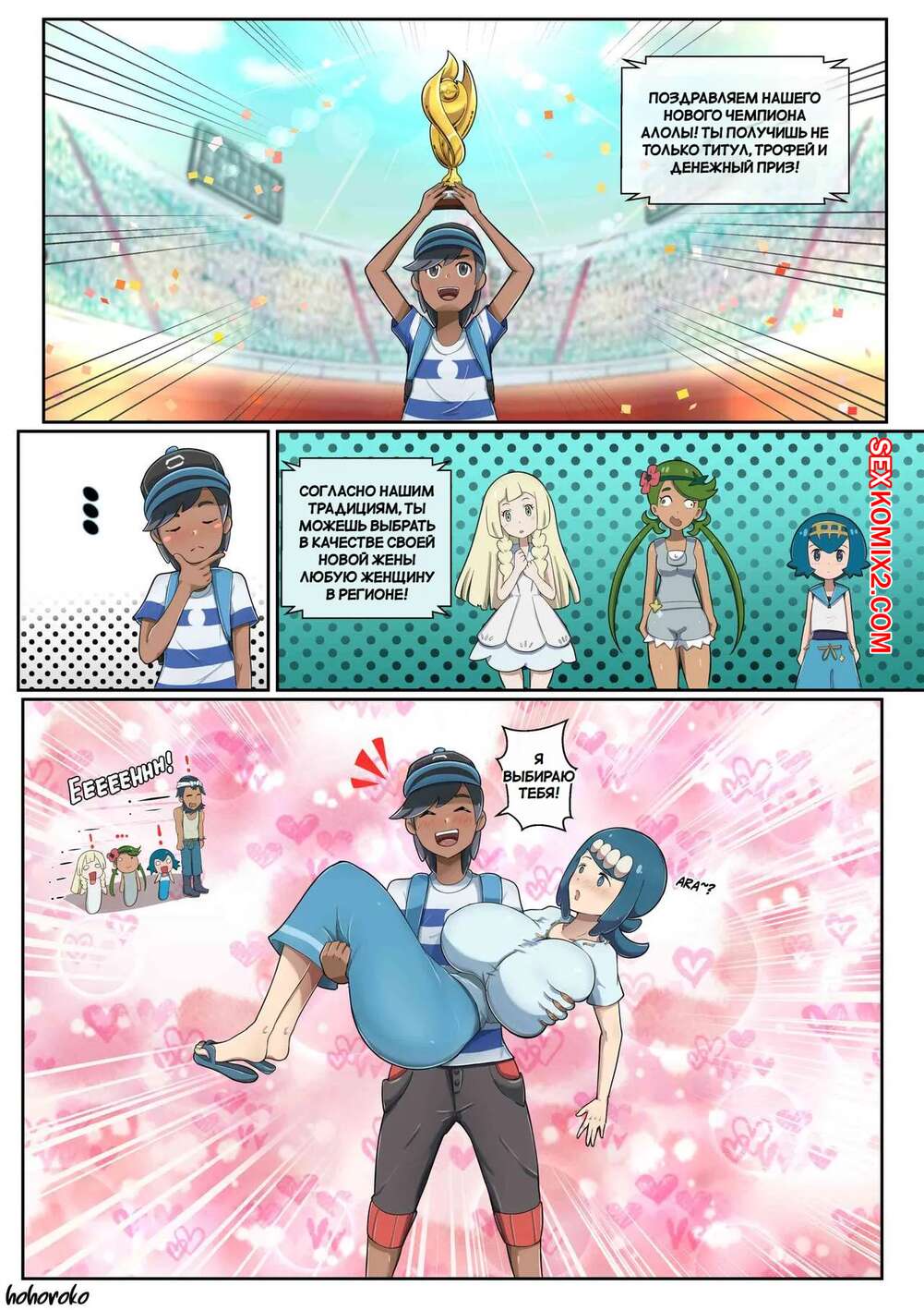 ΠΠΎΡΠ½ΠΎ ΠΊΠΎΠΌΠΈΠΊΡ ΠΠ΅Π΄ΠΈ Π§Π΅ΠΌΠΏΠΈΠΎΠ½Π° ΠΠ»ΠΎΠ»Ρ. The Lady of the Alola Champion. Hohoroko. ΠΠ°ΡΠ΅Π½Ρ ΠΎΠ΄Π΅ΡΠΆΠ°Π» ΠΏΠΎΠ±Π΅Π΄Ρ Π² ΡΡΡΠ½ΠΈΡΠ΅ ΠΈ ΠΏΠΎΠ»ΡΡΠΈΠ» Π²ΠΎΠ·ΠΌΠΎΠΆΠ½ΠΎΡΡΡ Π²ΡΠ±ΡΠ°ΡΡ Π»ΡΠ±ΡΡ Π΄Π΅Π²ΡΡΠΊΡ. ΠΠ½ Π·Π°Π±ΡΠ°Π» ΡΠ΅ΠΊΡΡΠ°Π»ΡΠ½ΡΡ ΠΊΡΠ°ΡΠΎΡΠΊΡ ΠΊ ΡΠ΅Π±Π΅ Π΄ΠΎΠΌΠΎΠΉ, Π³Π΄Π΅ ΠΎΠ½Π° ΠΎΡΡΠΎΡΠ°Π»Π° Π΅Π³ΠΎ ΡΠ»Π΅Π½ ΠΈ Π΄Π°Π»Π° ΡΠ΅Π±Ρ Π²ΡΠ΅Π±Π°ΡΡ.