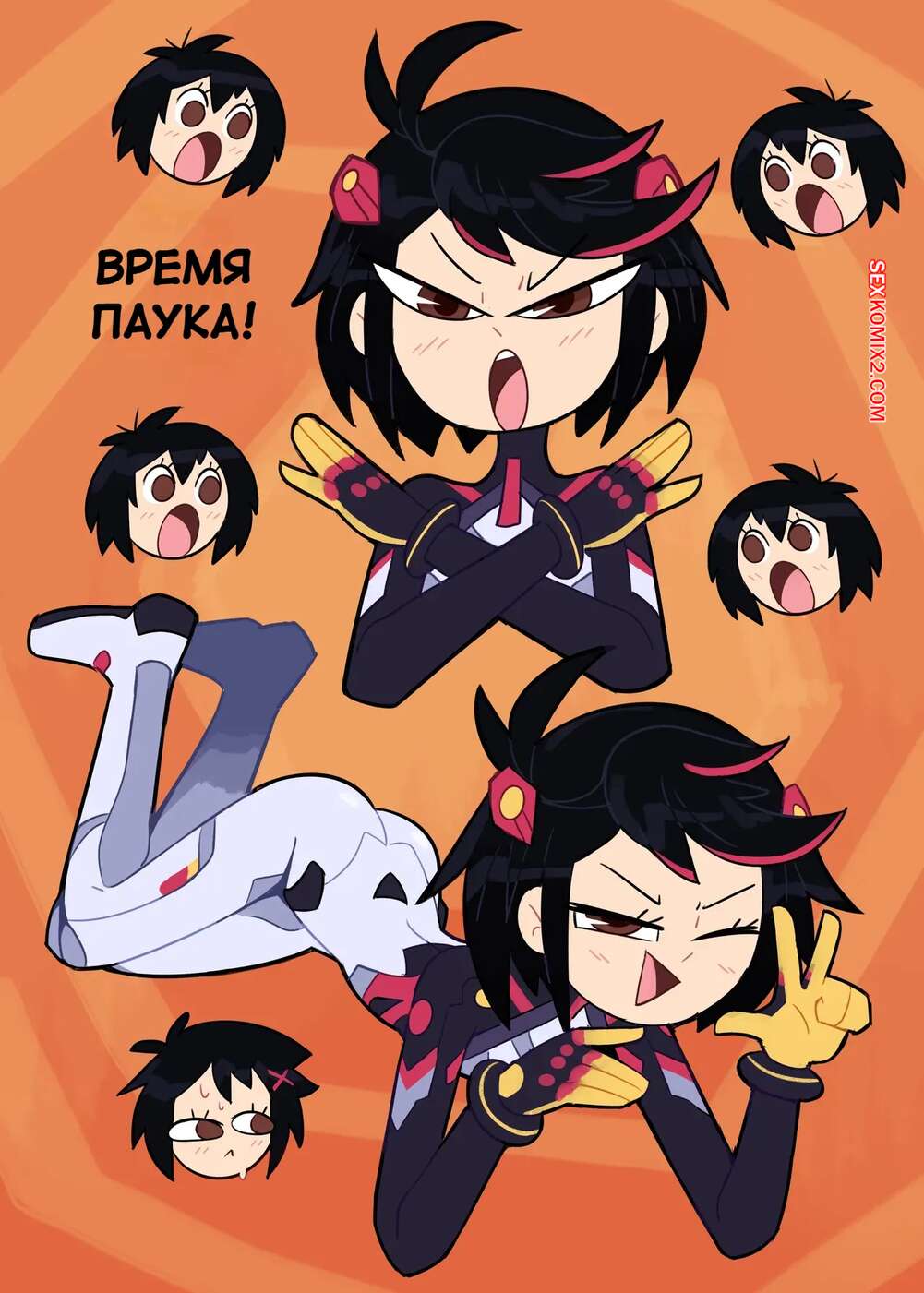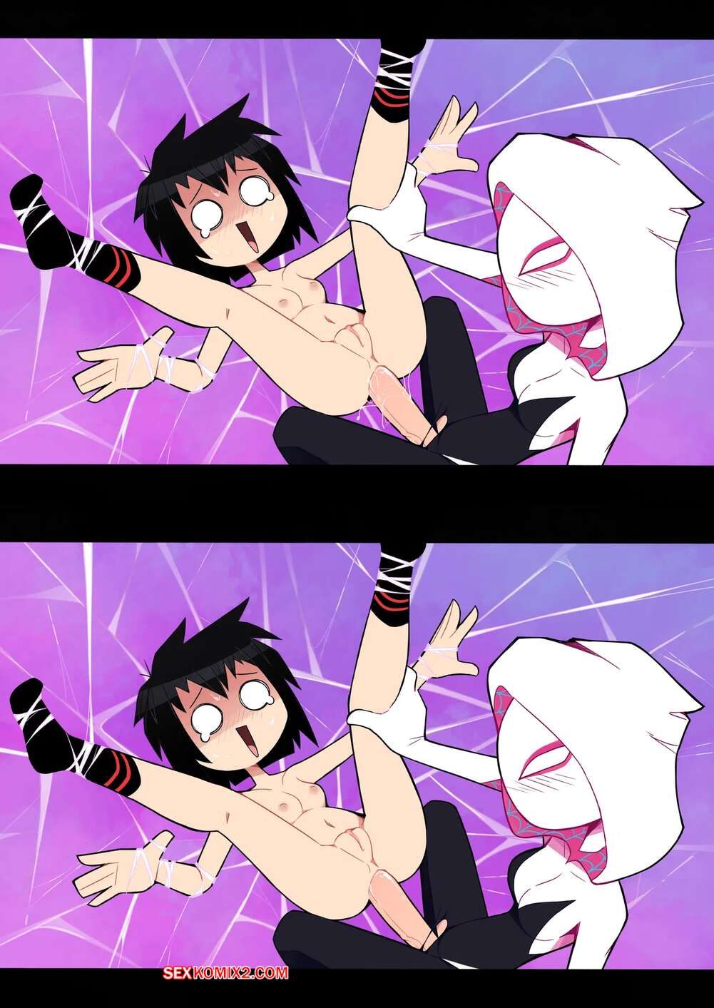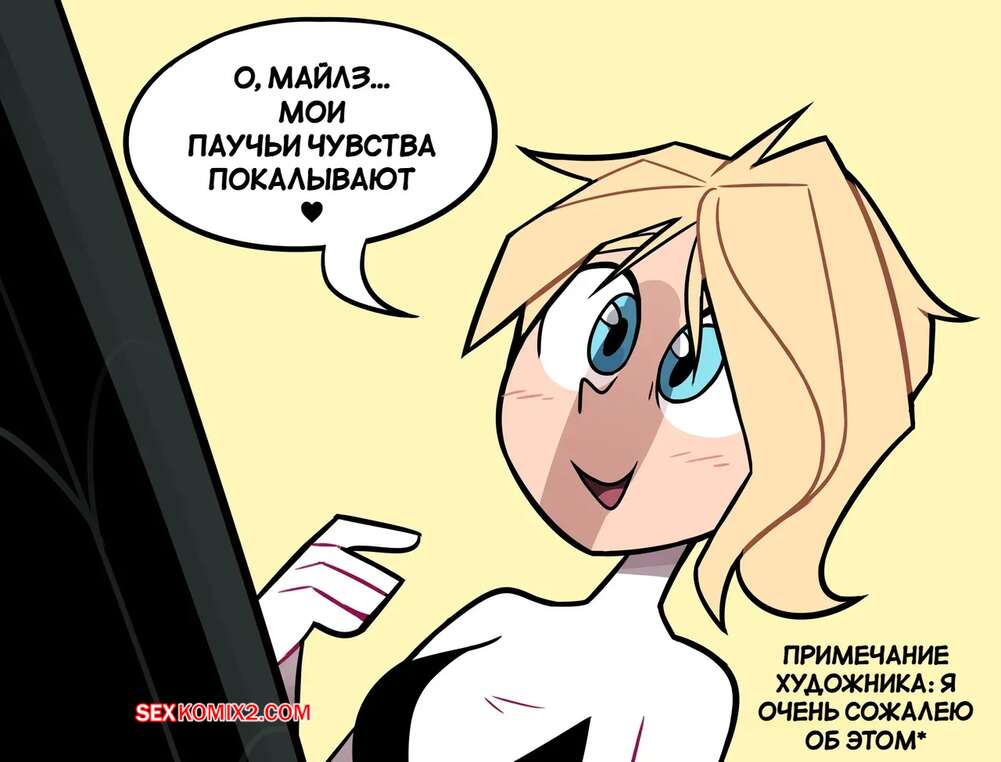 Порно комикс Человек паук. Кончать в паучьем мире. Cumming in the Spider Verse. Miscon. Юная брюнетка обожает трахаться. Она раздевается и соблазняет своих дружков шикарным телом, после чего раздигает ножки и дает им себя хорошенько выебать.