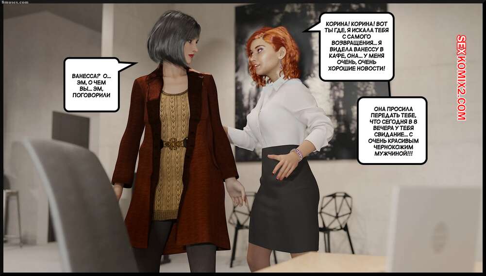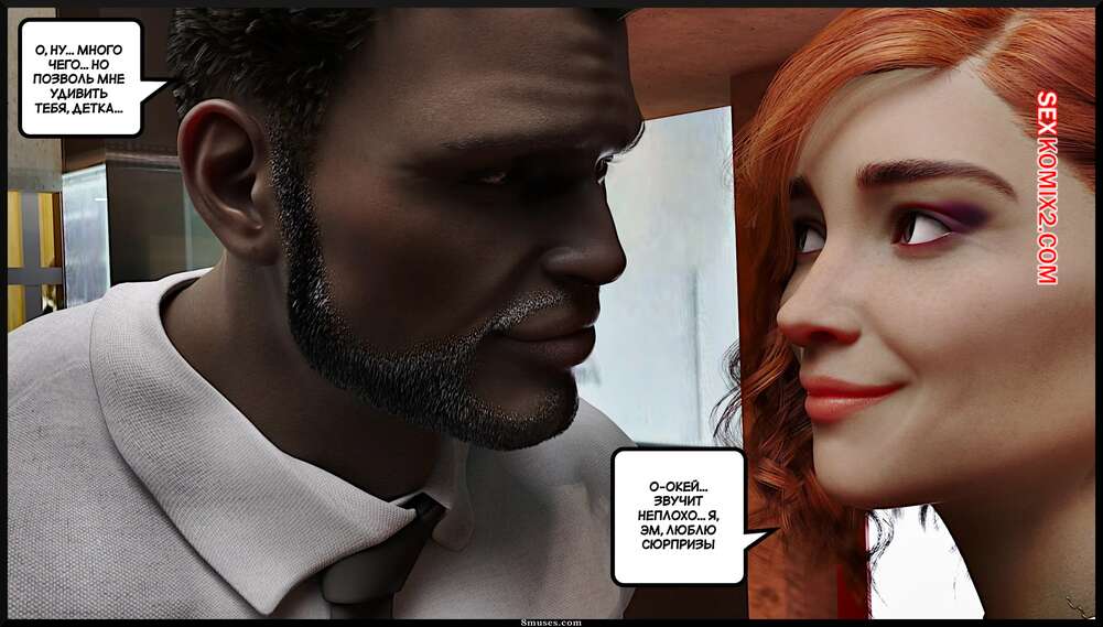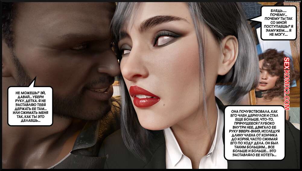 Порно комикс Приключения домохозяйки. Часть 2. A Housewifes Adventures. Alison Hale Рыжая красотка познакомилась с темнокожим парнем и он соблазнил ее своим большим членом. Девушка разделась и отсосала хуй своего нового дружка, после чего дала ему себя выебать.