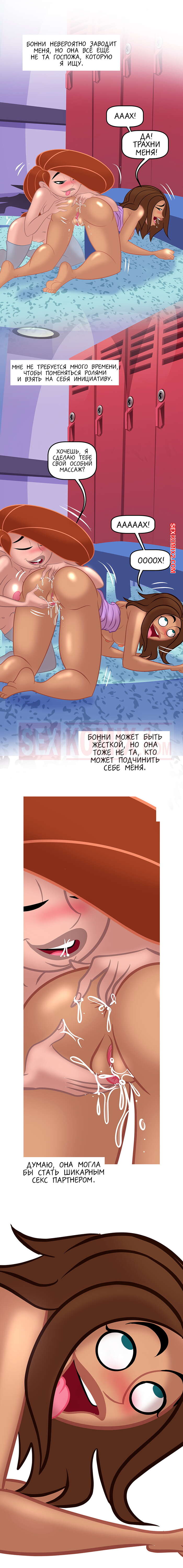 Порно комикс Ким с плюсом. Похотливая возможность. Часть 3. Эпизод 2. Tease Comix. Ким так погрузилась в секс со своей подругой, что приняла ее за Шиго. Каждый шлепок по заднице возбуждал ее все сильней и сильней пока она не кончила струей.