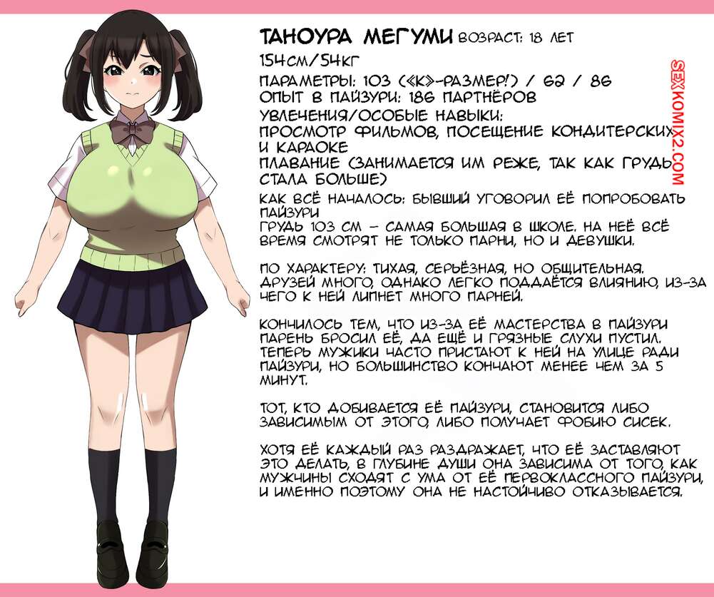 ΠΠΎΡΠ½ΠΎ ΠΊΠΎΠΌΠΈΠΊΡ ΠΠ΅Π²ΡΡΠΊΠ°, ΠΏΡΠΎΡΠ»Π°Π²ΠΈΠ²ΡΠ°ΡΡΡ ΡΠ²ΠΎΠΈΠΌ Π²Π΅Π»ΠΈΠΊΠΎΠ»Π΅ΠΏΠ½ΡΠΌ ΠΏΠ°ΠΉΠ·ΡΡΠΈ. Shake Chazuke Π£ Π³ΠΎΡΡΡΠ΅ΠΉ Π±ΡΡΠ½Π΅ΡΠΊΠΈ Π±ΠΎΠ»ΡΡΠΈΠ΅ ΡΠΈΡΡΠΊΠΈ, ΠΊΠΎΡΠΎΡΡΠ΅ ΡΠ²ΠΎΠ΄ΡΡ Ρ ΡΠΌΠ° ΠΏΠ°ΡΠ½Π΅ΠΉ ΡΡΠ΄ΠΎΠΌ Ρ Π½Π΅ΠΉ. ΠΠ½ΠΈ ΠΏΠ»Π°ΡΡΡ Π΅ΠΉ Ρ ΠΎΡΠΎΡΠΈΠ΅ Π΄Π΅Π½ΡΠ³ΠΈ Π·Π° ΡΠΎ, ΡΡΠΎΠ±Ρ ΠΎΠ½Π° ΠΏΠΎΠ΄ΡΠΎΡΠΈΠ»ΠΈ ΠΈΠΌ ΡΠ»Π΅Π½Ρ ΡΠ²ΠΎΠΈΠΌΠΈ ΡΠΈΡΡΠΊΠ°ΠΌΠΈ, ΠΏΠΎΠ»ΡΡΠ°Ρ Π½Π΅Π²Π΅ΡΠΎΡΡΠ½ΠΎΠ΅ ΡΠ΄ΠΎΠ²ΠΎΠ»ΡΡΡΠ²ΠΈΠ΅ ΠΈ ΠΌΠΎΡΠ½ΠΎ ΠΊΠΎΠ½ΡΠ°Ρ.