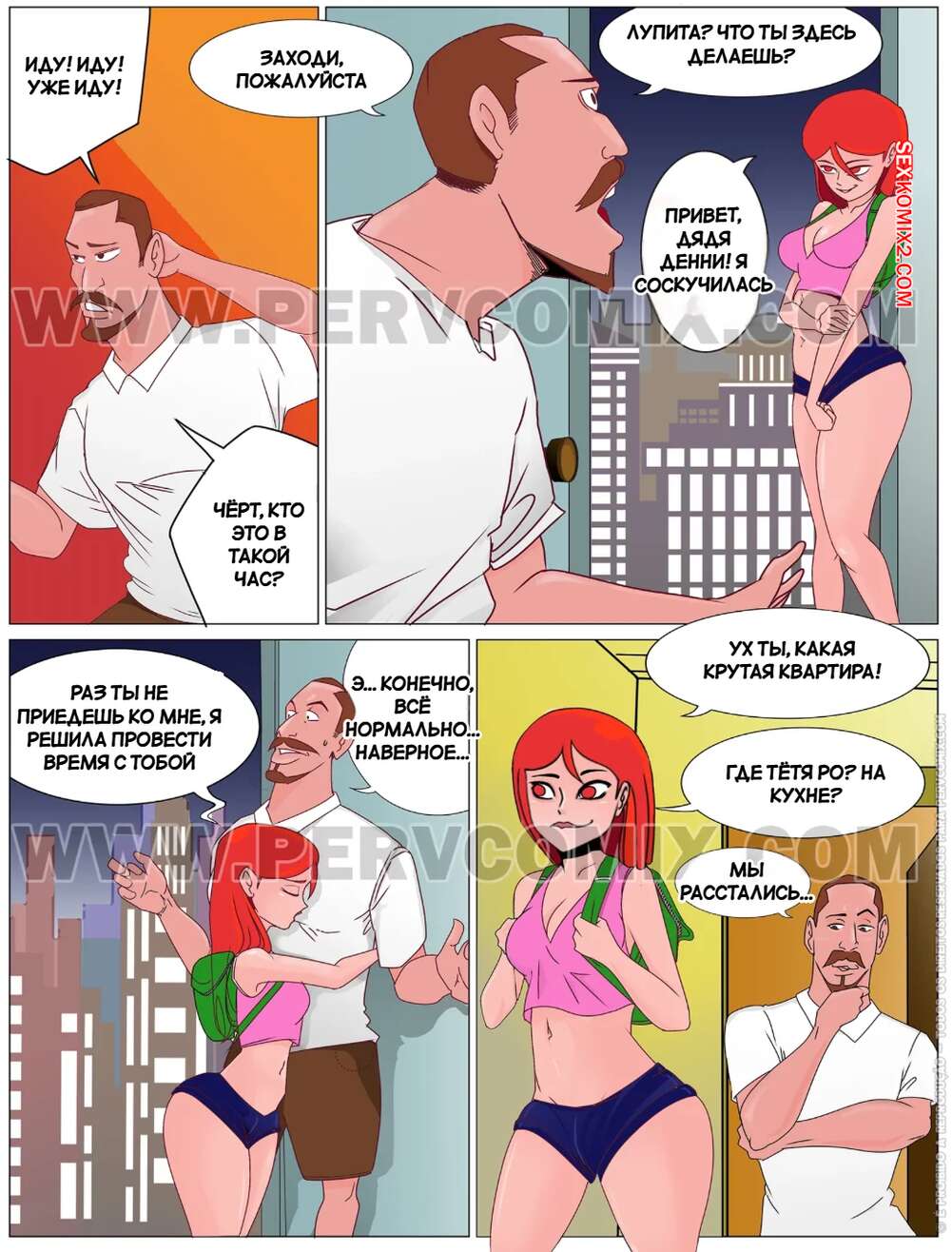 Порно комикс Лупита. Часть 2. Lupita. PervComix. Девушка с розовыми волосами пришла к своему зрелому дяде, он не ожидал ее увидеть, но все же уделил внимание. Она не просто пришла, а с целью соблазнить его и занять с ним сексом.