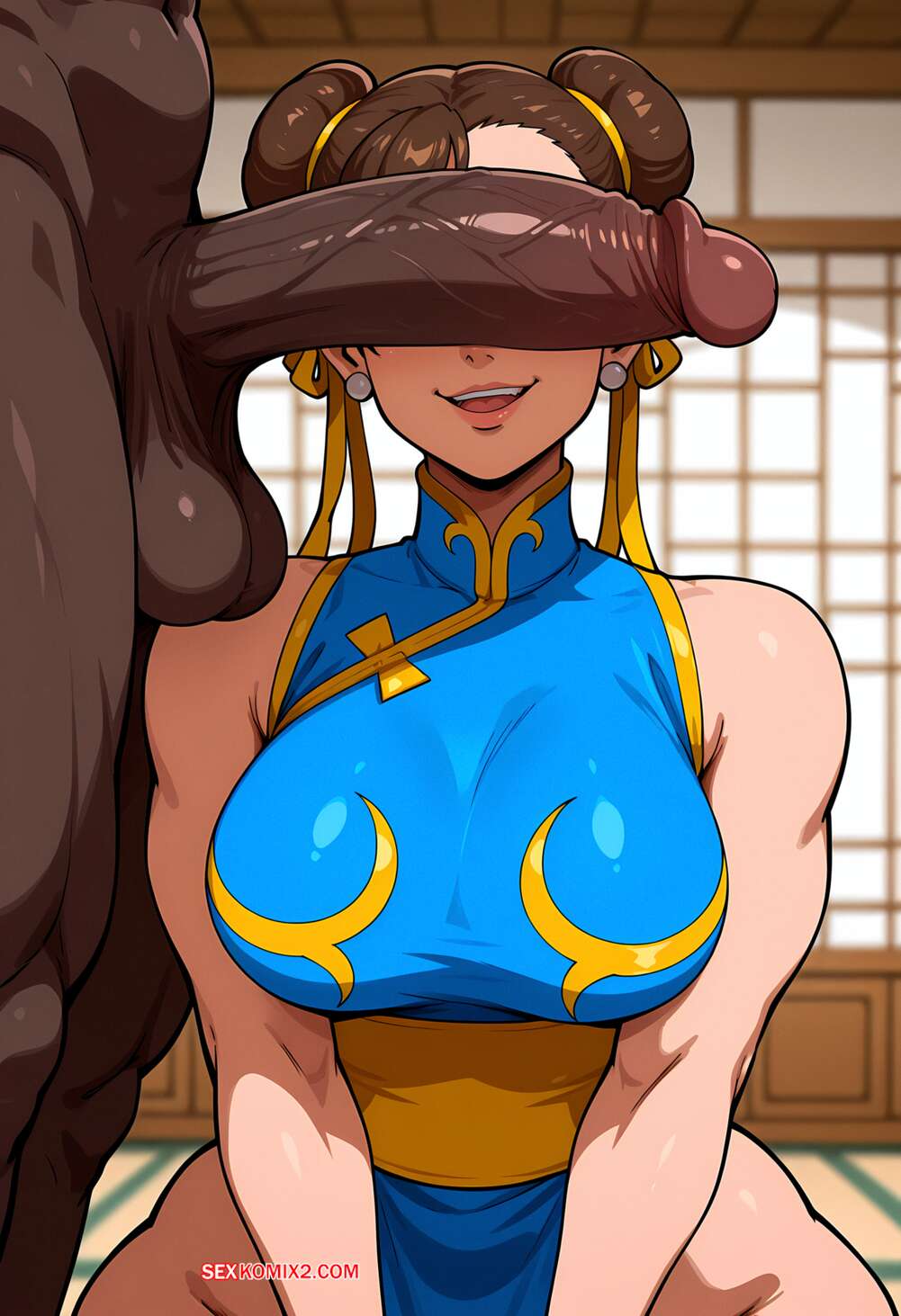 ΠΠΎΡΠ½ΠΎ ΠΊΠΎΠΌΠΈΠΊΡ Chun Li 2. Floxin ΠΡΠ°ΡΠΎΡΠΊΠ° Π§ΡΠ½ ΠΠΈ ΠΏΠΎΠ·ΠΈΡΡΠ΅Ρ ΠΏΠ΅ΡΠ΅Π΄ ΡΠ΅ΠΌΠ½ΠΎΠΊΠΎΠΆΠΈΠΌ ΠΏΠ°ΡΠ½Π΅ΠΌ, ΡΠΎΠ±Π»Π°Π·Π½ΡΡ Π΅Π³ΠΎ ΡΠ΅ΠΊΡΡΠ°Π»ΡΠ½ΡΠΌΠΈ ΡΠΎΡΠΌΠ°ΠΌΠΈ. ΠΠ΅Π²ΡΡΠΊΠ° Π²ΡΡΠ°Π»Π° Π½Π° ΠΊΠΎΠ»Π΅Π½ΠΈ ΠΈ ΠΎΡΡΠΎΡΠ°Π»Π° Π±ΠΎΠ»ΡΡΠΎΠΉ Ρ ΡΠΉ ΠΏΠ°ΡΠ½Ρ, ΠΏΠΎΡΠ»Π΅ ΡΠ΅Π³ΠΎ Π΄Π°Π»Π° Π΅ΠΌΡ ΡΡΠ°Ρ Π½ΡΡΡ ΡΠ²ΠΎΡ ΠΏΠΈΠ·Π΄Π΅Π½ΠΊΡ.