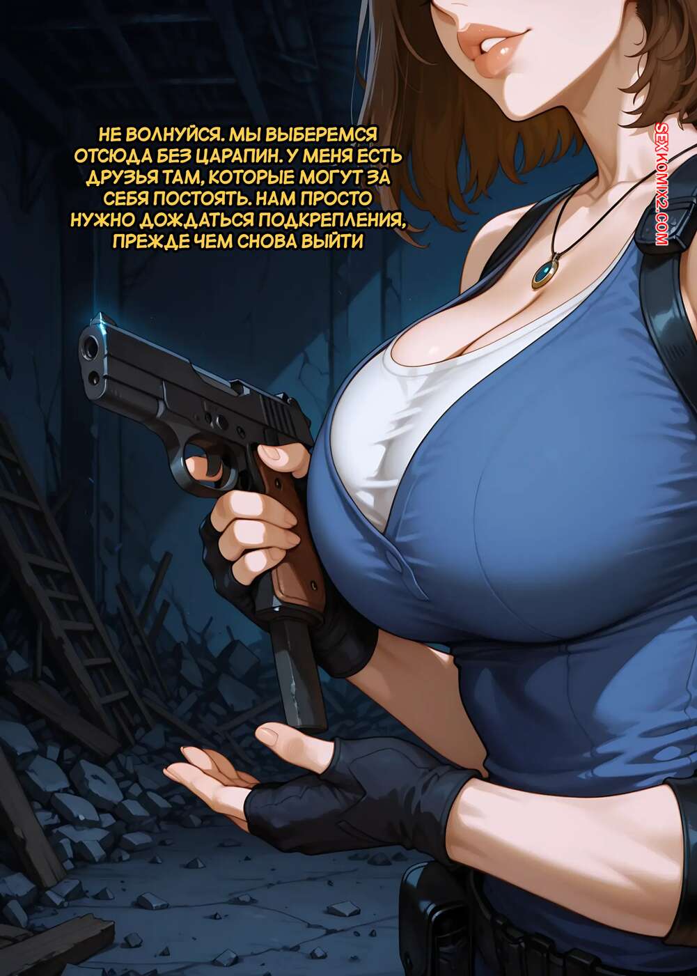 ΠΠΎΡΠ½ΠΎ ΠΊΠΎΠΌΠΈΠΊΡ Resident Evil. ΠΠΎΠ²Π°Ρ ΡΠ³ΡΠΎΠ·Π°. A New Threat. Next Waifus. ΠΠ°ΡΠ΅Π½Ρ Π½Π°ΠΏΠ°Π» Π½Π° Π³ΠΎΡΡΡΡΡ Π±ΡΡΠ½Π΅ΡΠΊΡ Π² Π·Π°Π±ΡΠΎΡΠ΅Π½Π½ΠΎΠΌ Π·Π΄Π°Π½ΠΈΠΈ ΠΈ ΡΠ΅ΡΠΈΠ» Π²ΠΎΡΠΏΠΎΠ»ΡΠ·ΠΎΠ²Π°ΡΡΡΡ Π΅Π΅ ΡΠ΅Π»ΠΎΠΌ. ΠΠ½ ΡΠΎΡΠ²Π°Π» ΠΎΠ΄Π΅ΠΆΠ΄Ρ Ρ ΠΊΡΠ°ΡΠΎΡΠΊΠΈ ΠΈ Π²ΡΡΠ°Π²ΠΈΠ» Π² Π½Π΅Π΅ ΡΠ²ΠΎΠΉ ΡΠ»Π΅Π½, ΠΏΠΎΡΠ»Π΅ ΡΠ΅Π³ΠΎ Ρ ΠΎΡΠΎΡΠ΅Π½ΡΠΊΠΎ Π²ΡΠ΅Π±Π°Π» Π΅Π΅ ΠΏΠΈΠ·Π΄Π΅Π½ΠΊΡ.