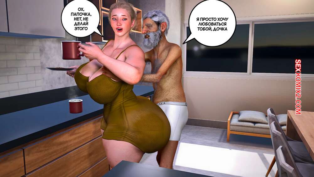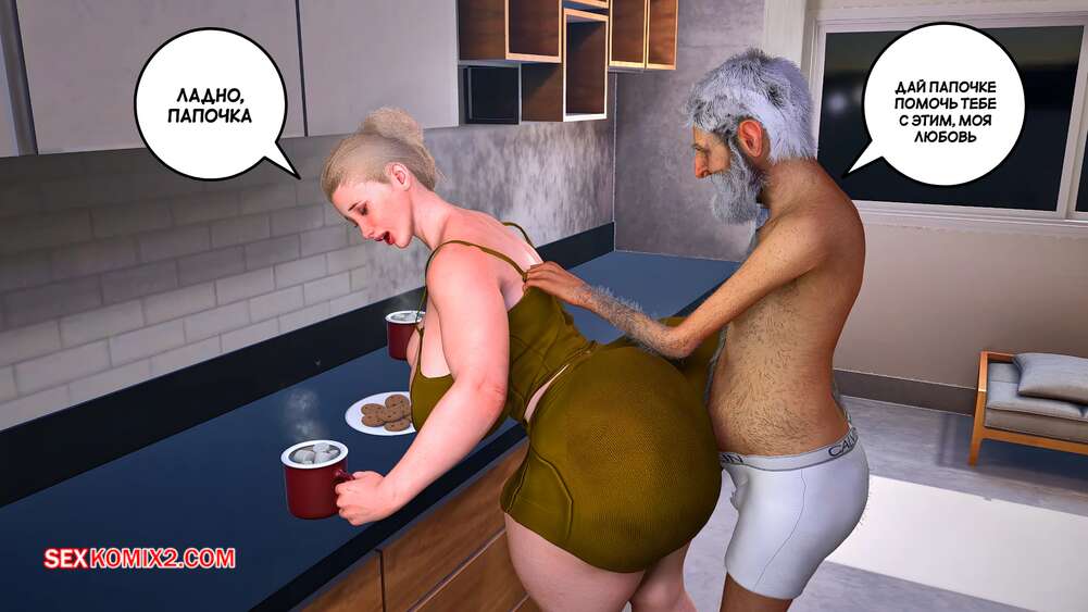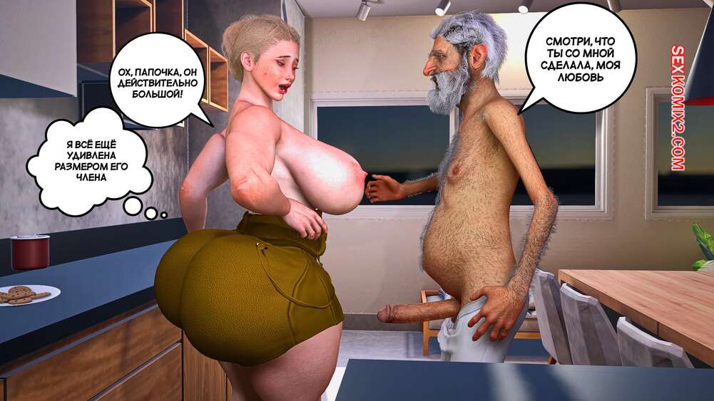 Порно комикс Забота о моем отце. Часть 4. Care my father. Bartolito3d for sexkomix2.com Горячая милфа готовила завтрак отцу, но он начал обнимать ее сзади, возбуждая красотку. Она разделась и встала на колени, чтобы взять член старика в ротик.