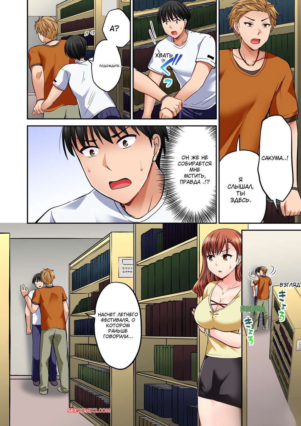 ΠΠΎΡΠ½ΠΎ ΠΊΠΎΠΌΠΈΠΊΡ ΠΠ΅ΡΡΡ Π―Π·ΡΠΊΠΎΠΌ. ΠΠ΅Π· ΡΠ΅Π½Π·ΡΡΡ. Π§Π°ΡΡΡ 37 ΠΈ 38 ΠΈ 39 ΠΠ°ΡΠ΅Π½Ρ Ρ Π΄Π΅Π²ΡΡΠΊΠΎΠΉ ΠΎΡΠΏΡΠ°Π²ΠΈΠ»ΠΈΡΡ Π² Π±ΠΈΠ±Π»ΠΈΠΎΡΠ΅ΠΊΡ, Π³Π΄Π΅ ΠΎΠ½ΠΈ ΡΠ΅ΡΠΈΠ»ΠΈ ΠΏΡΠ΅Π΄Π°ΡΡΡΡ ΡΡΡΠ°ΡΡΠΈ. ΠΠ½ΠΈ ΡΡΠ°Π»ΠΈ ΡΡΡΠ°ΡΡΠ½ΠΎ ΡΠ΅Π»ΠΎΠ²Π°ΡΡΡΡ, ΠΏΠΎΡΠ»Π΅ ΡΠ΅Π³ΠΎ ΠΏΠ°ΡΠ½ΠΈΡΠΊΠ° ΡΡΠ°Π» ΡΠΎΡΠ°ΡΡ ΡΠΈΡΡΠΊΠΈ ΠΊΡΠ°ΡΠΎΡΠΊΠΈ ΠΈ Π»ΠΈΠ·Π°ΡΡ Π΅Π΅ Π²Π»Π°ΠΆΠ½ΡΡ ΠΊΠΈΡΠΊΡ.