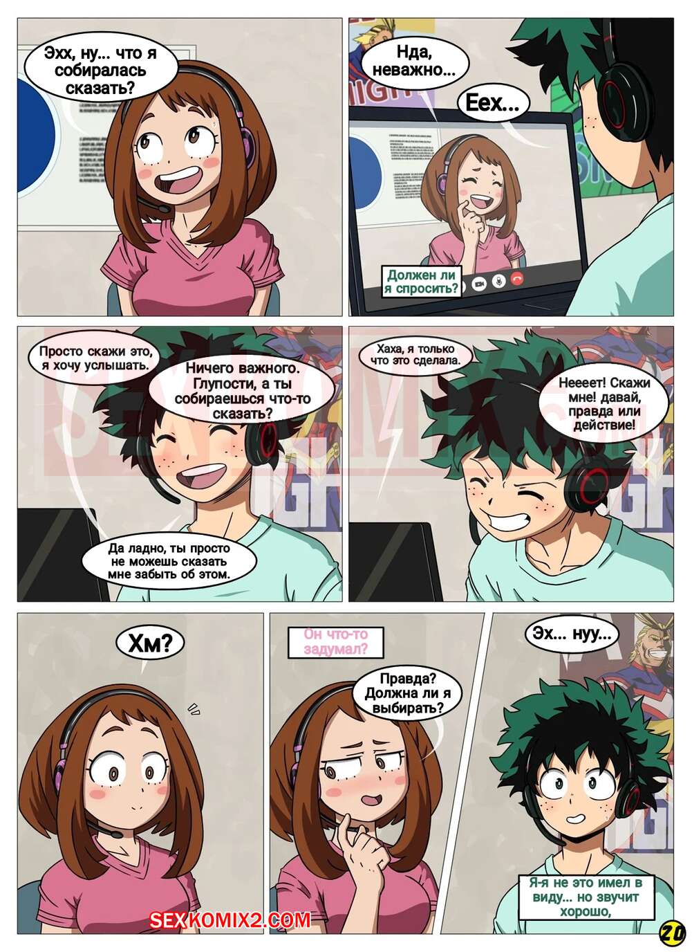 Порно комикс Академия. Я тебя вижу. I See You. My Hero Academia Молодая горячая красотка брюнетка решила повеселиться со своим дружком по видео связи. Она разделись друг перед другом и продемонстрировали свои шикарные тела, а затем стали дрочить себе.
