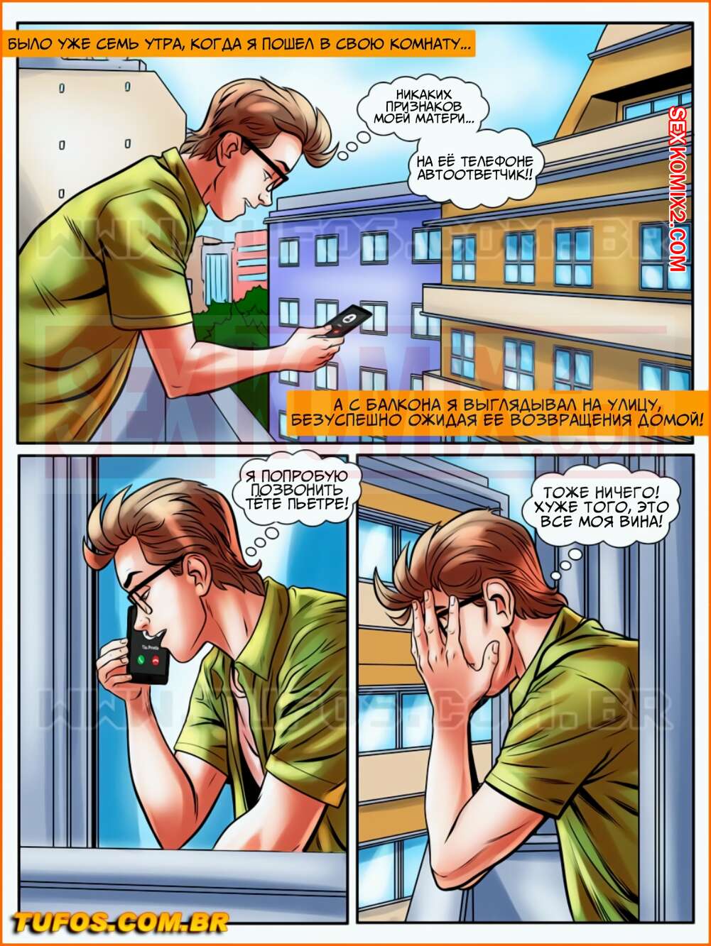 ΠΠΎΡΠ½ΠΎ ΠΊΠΎΠΌΠΈΠΊΡ ΠΠ°ΠΊΠΎΠΌΡΡΠ²ΠΎ Π·Π°ΡΡΠΊΠΈ. Π§Π°ΡΡΡ 22. Π‘Π΅ΠΊΡ ΠΏΠΎ Π²ΠΈΠ΄Π΅ΠΎΡΠ²ΡΠ·ΠΈ ΠΠ°ΡΠ΅Π½Ρ ΡΡΠΎΡΠ» Π½Π° Π±Π°Π»ΠΊΠΎΠ½Π΅ ΠΈ ΠΏΡΡΠ°Π»ΡΡ Π½Π°ΠΉΡΠΈ ΡΠ²ΠΎΡ ΠΌΠ°ΠΌΠΊΡ, Π½ΠΎ Π΅ΠΌΡ Π² ΡΡΠΎΡ ΠΌΠΎΠΌΠ΅Π½Ρ ΠΏΠΎΠ·Π²ΠΎΠ½ΠΈΠ» Π΅Π³ΠΎ ΠΊΡΠ·Π΅Π½, ΡΡΠ΄ΠΎΠΌ Ρ ΠΊΠΎΡΠΎΡΡΠΌ ΠΎΠΊΠ°Π·Π°Π»Π°ΡΡ ΡΠΏΡΡΠ°Ρ Π³ΠΎΠ»Π°Ρ ΠΌΠ°ΠΌΠΊΠ° ΠΏΠ°ΡΠ½Ρ. ΠΡΠ·Π΅Π½ ΡΡΠ°Π» ΡΠΎΠ²Π°ΡΡ Π² ΡΠΎΡ Π΅ΠΉ ΡΠ²ΠΎΠΉ Π±ΠΎΠ»ΡΡΠΎΠΉ Ρ ΡΠΉ, Π° Π·Π°ΡΠ΅ΠΌ Ρ ΠΎΡΠΎΡΠ΅Π½ΡΠΊΠΎ Π΅Π΅ Π²ΡΠ΅Π±Π°Π».