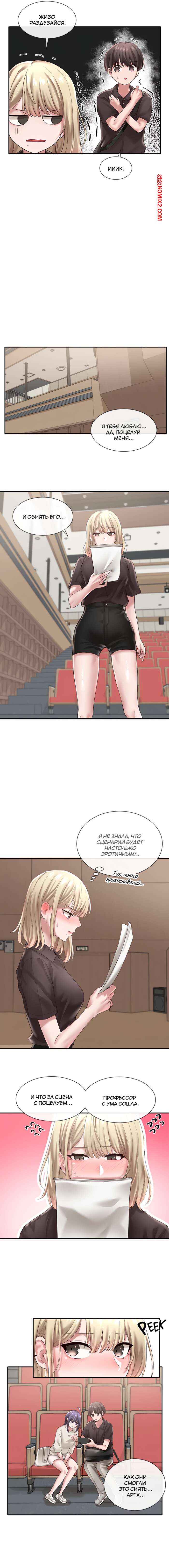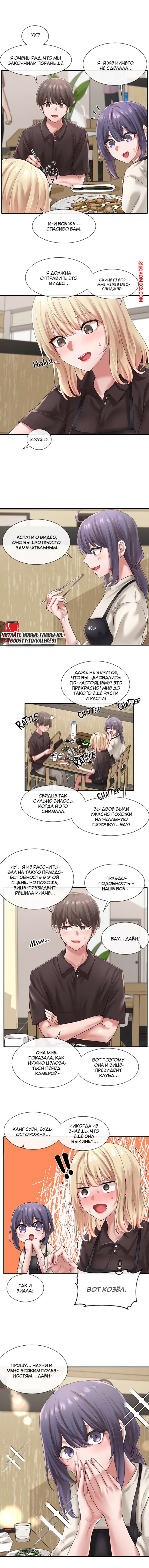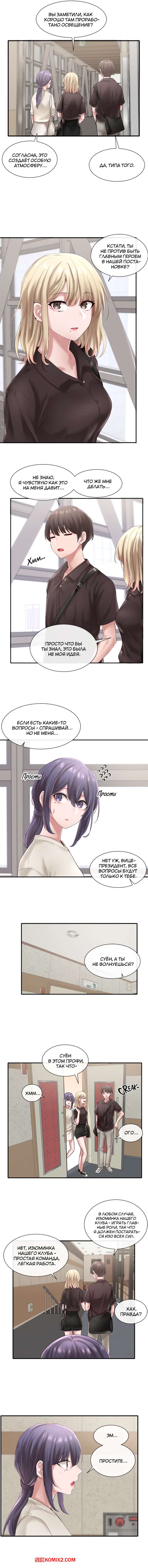 ΠΠΎΡΠ½ΠΎ ΠΊΠΎΠΌΠΈΠΊΡ Π’Π΅Π°ΡΡΠ°Π»ΡΠ½ΡΠΉ ΠΊΠ»ΡΠ±. Π§Π°ΡΡΠΈ 43 ΠΈ 44 ΠΈ 45. Theater cociety ΠΠ°ΡΠ΅Π½Ρ ΡΠ΅Π΄ΠΈΠ½ΠΈΠ»ΡΡ Ρ Π³ΠΎΡΡΡΠ΅ΠΉ ΡΠΈΡΡΡΡΠΎΠΉ ΠΊΡΠ°ΡΠΎΡΠΊΠΎΠΉ Π±Π»ΠΎΠ½Π΄ΠΈΠ½ΠΊΠΎΠΉ. ΠΠ½ΠΈ ΠΎΠ±Π° Π±ΡΠ»ΠΈ ΠΎΡΠ΅Π½Ρ Π²ΠΎΠ·Π±ΡΠΆΠ΄Π΅Π½Ρ ΠΈ ΡΠ΅ΡΠΈΠ»ΠΈ Π½Π°ΡΠ°ΡΡ ΡΡΡΠ°ΡΡΠ½ΠΎ ΡΠ΅Π»ΠΎΠ²Π°ΡΡΡΡ, ΡΡΠΎΠ±Ρ Π½Π΅ΠΌΠ½ΠΎΠ³ΠΎ ΡΡΠΎΠ»ΠΈΡΡ ΡΠ²ΠΎΡ Π²ΠΎΠ·Π±ΡΠΆΠ΄Π΅Π½ΠΈΠ΅.